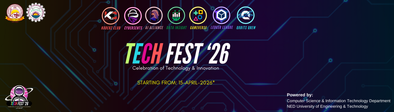 This Spring, TechFest ’26 returns as the flagship technology festival of the Department of Computer Science & IT, NED University, bringing renewed energy, innovation, and real-world challenges to campus. Taking place during Spring 2026, TechFest will transform NEDUET into a vibrant hub of competition, creativity, and collaboration, where students push boundaries, prototype ideas, and showcase technical excellence alongside peers and professionals.